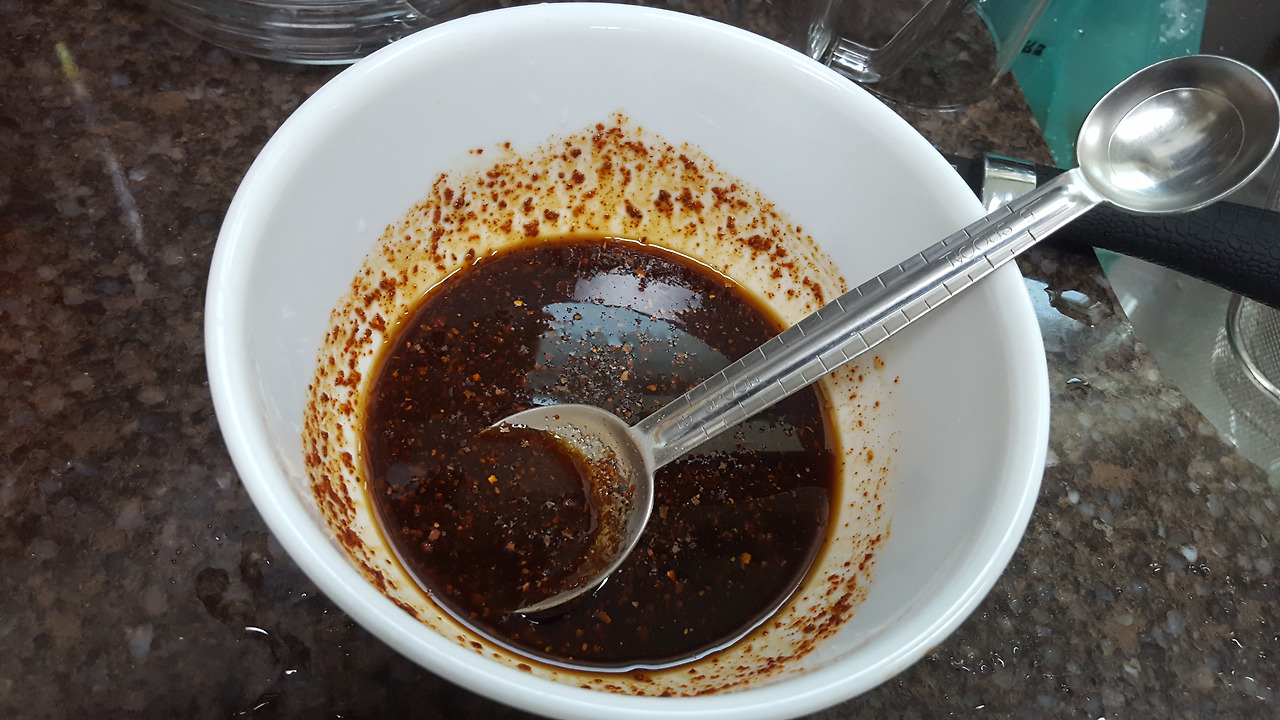 - 양념: 간장 7큰술, 고춧가루 3큰술, 물엿(조청 가능) 2큰술, 설탕 2큰술, 사과즙 2큰술, 청주 1큰술, 참기름 1/2큰술, 후추 약간, 생강가루 조금