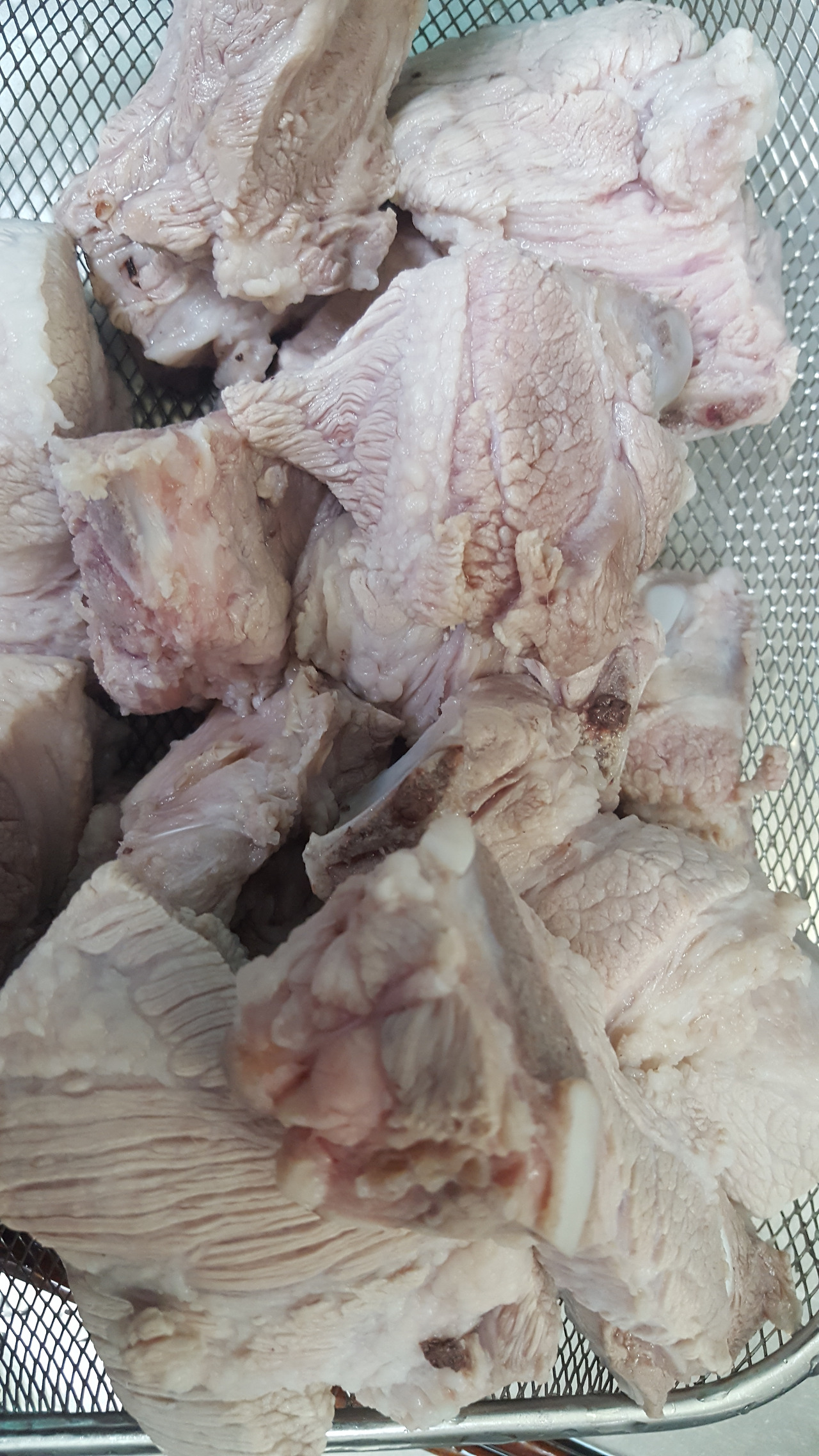 = 찬물에 넣으면 돼지 뼛가루와 피가 조금씩 나오는데 깨끗한 물이 나올때까지 뺀다