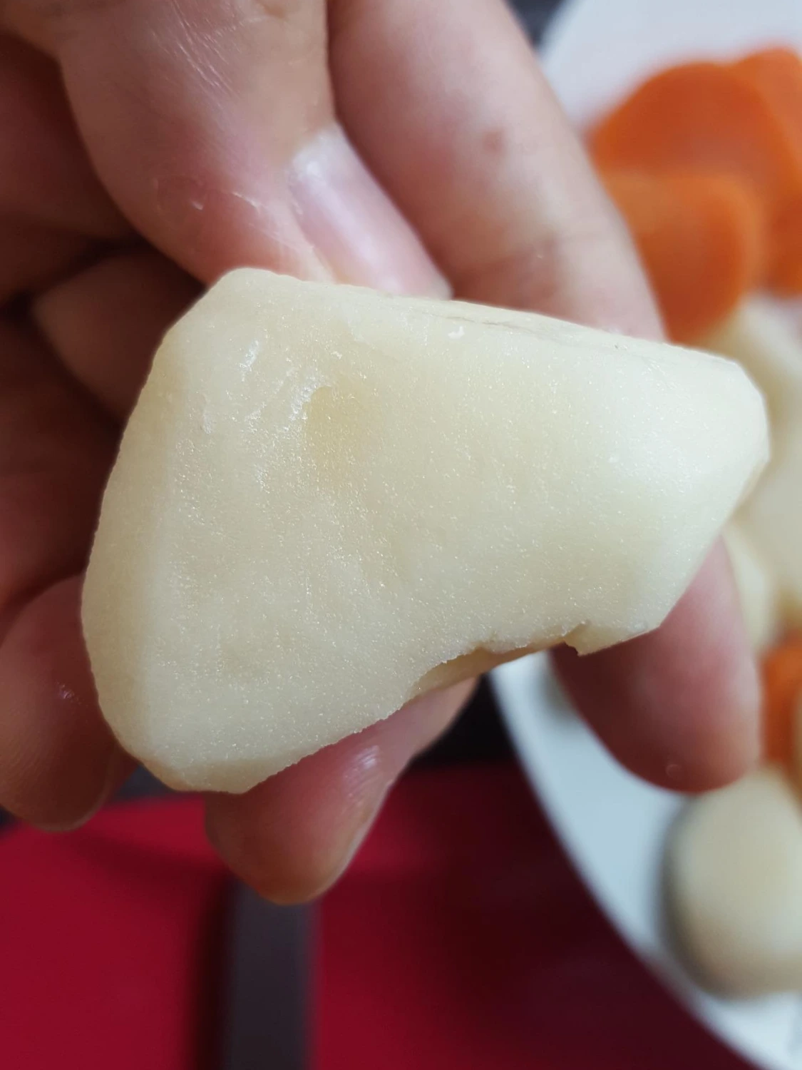 = 감자와 당근은 모서리를 둥글에 깎아주면 좋음. 감자와 당근이 익으면서 물러지면서 모서리가 깨질 수 있는데 미리 모서리를 둥글게 해주면 깨지는 것을 방지할 수 있음.
