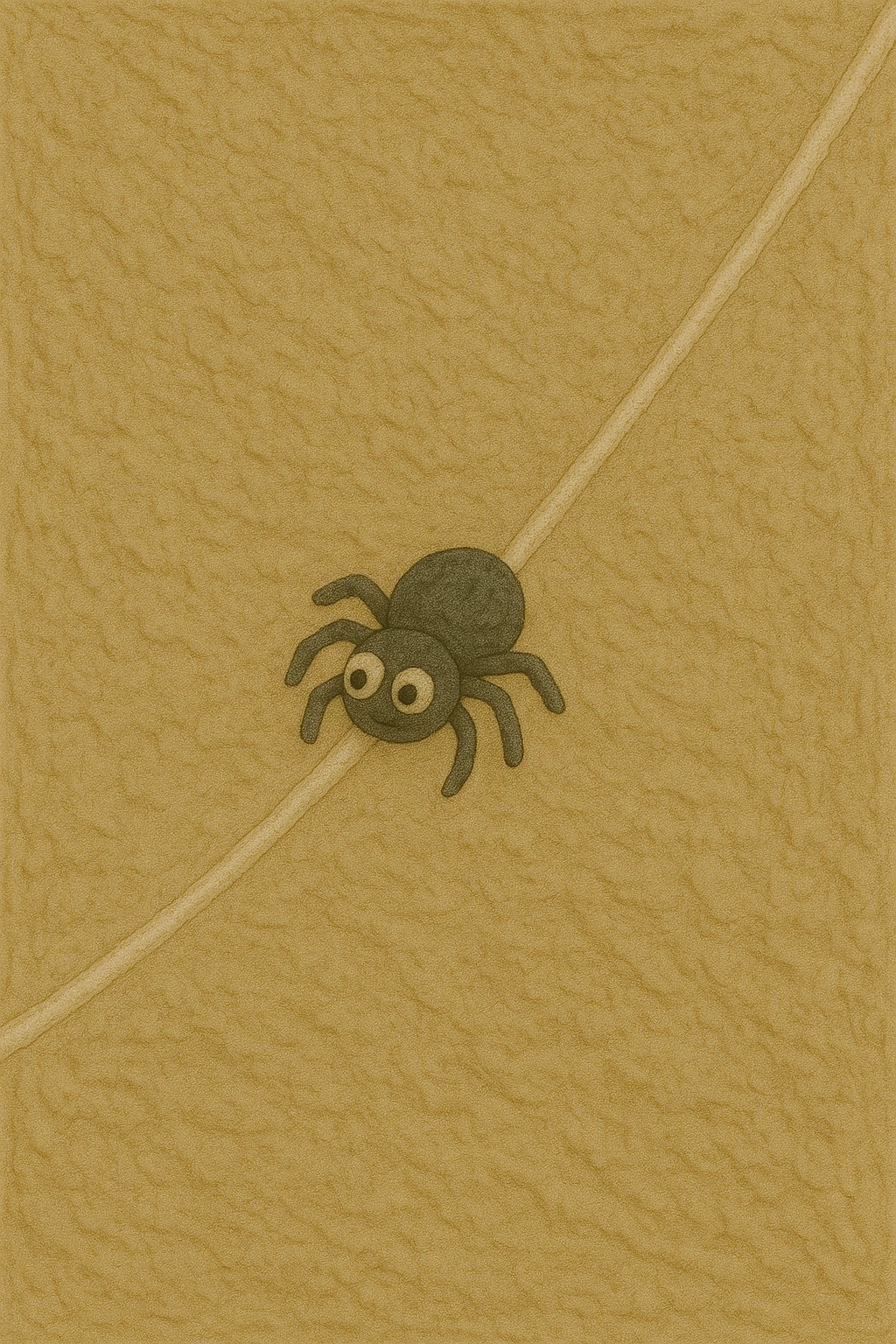 다음 날 아침 혹시 어제 봤던 그 거미가 와있을지도 모른다는 생각에 난 베란다 창을 열어봤어. 아무것도 보이지 않았어. 쓸쓸한 마음으로 뒤돌아서려는데 베란다 창 위쪽 모서리에 쳐진 거미줄이 눈에 들어오는 거야. 그때 쌀톨만한 새끼 거미 한 마리가 그 거미줄 끝에서 외줄 타기라도 하듯 아슬아슬 기어 다녔어.