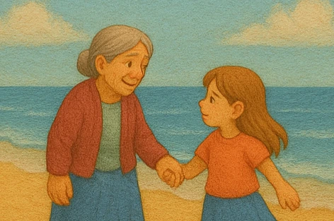 할머니와 나는 바닷가 모래사장을 어린아이처럼 뛰어다니며 즐거운 시간을 보냈다.