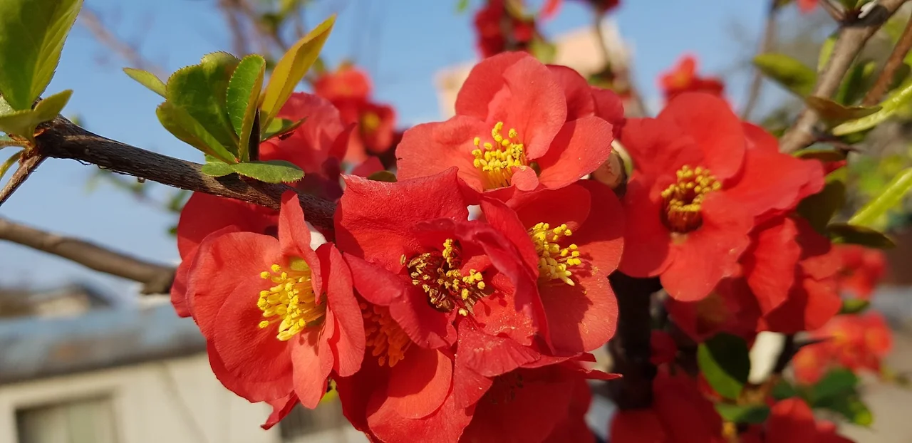 붉은 명자 꽃
