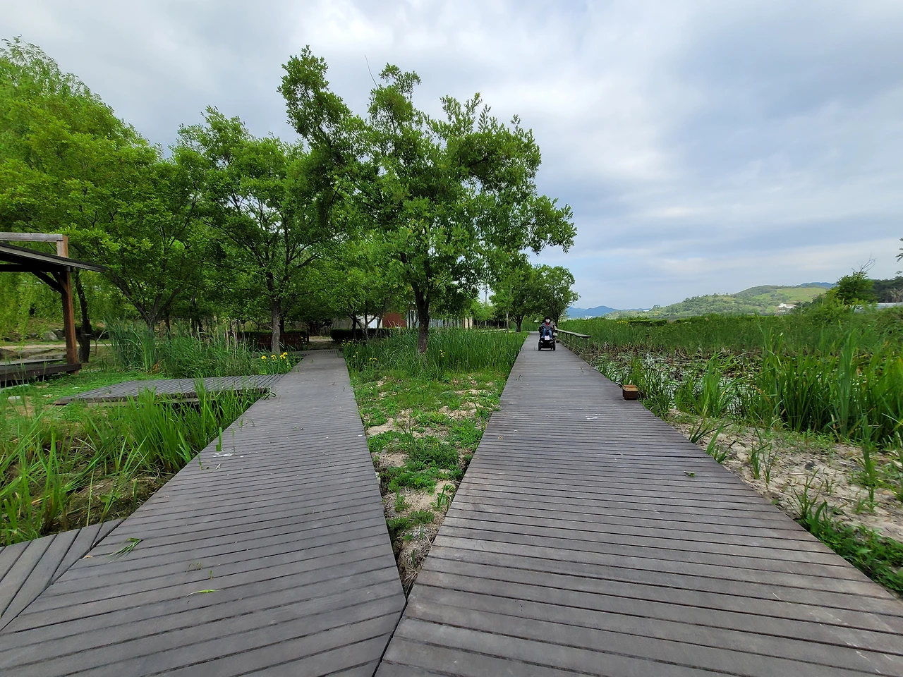 날이 하두 좋아서 휠체어로 걸어가기로 했다