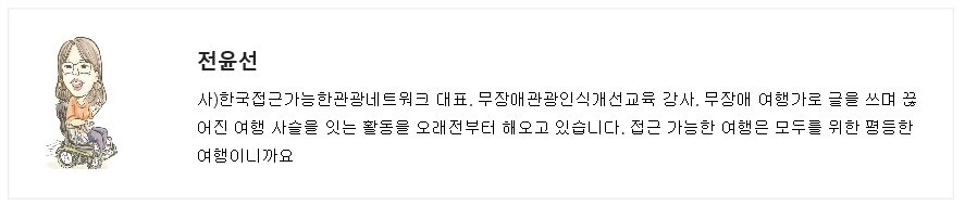 전윤선의 브런치입니다. 여행작가 에세이스트 입니다 무장애 여행을 지향하는 장애인 여행작가 입니다. 휠체어 타고 세상구경 나선 노마드 입니다.