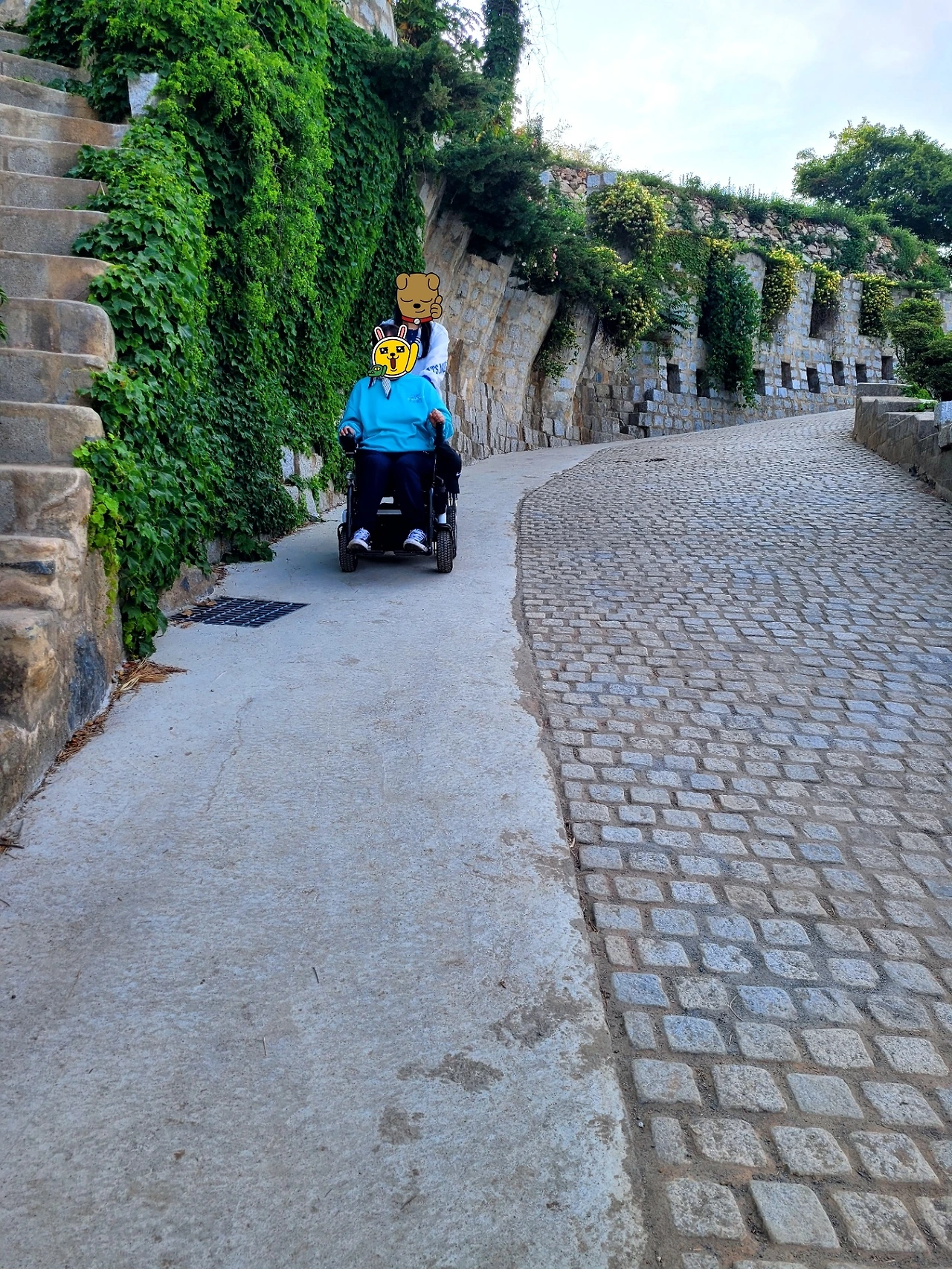 경사가 급해 꼭 지원인의 조력을 받고 오르내려야 한다.