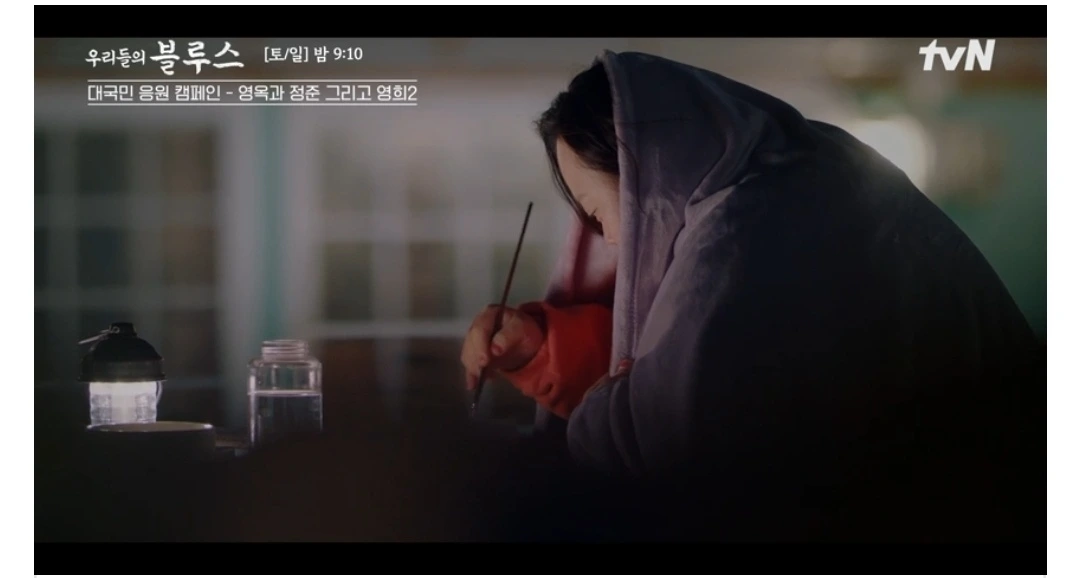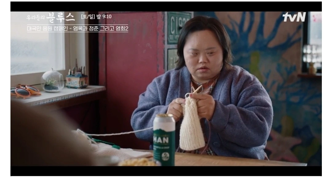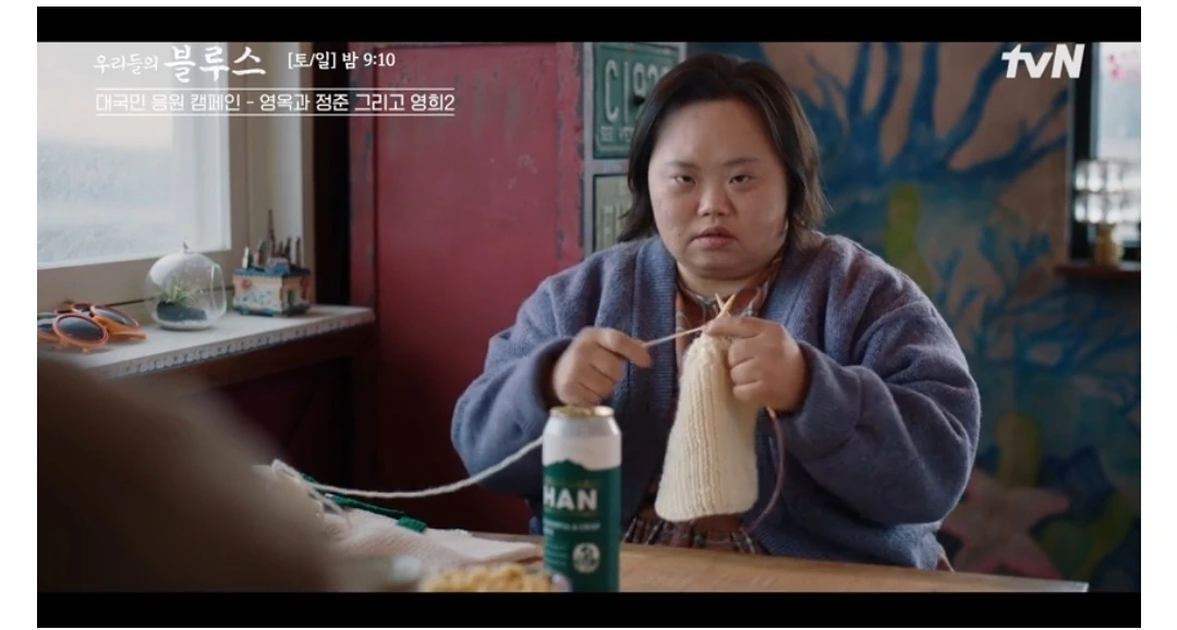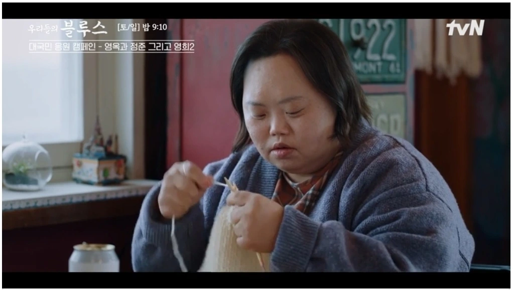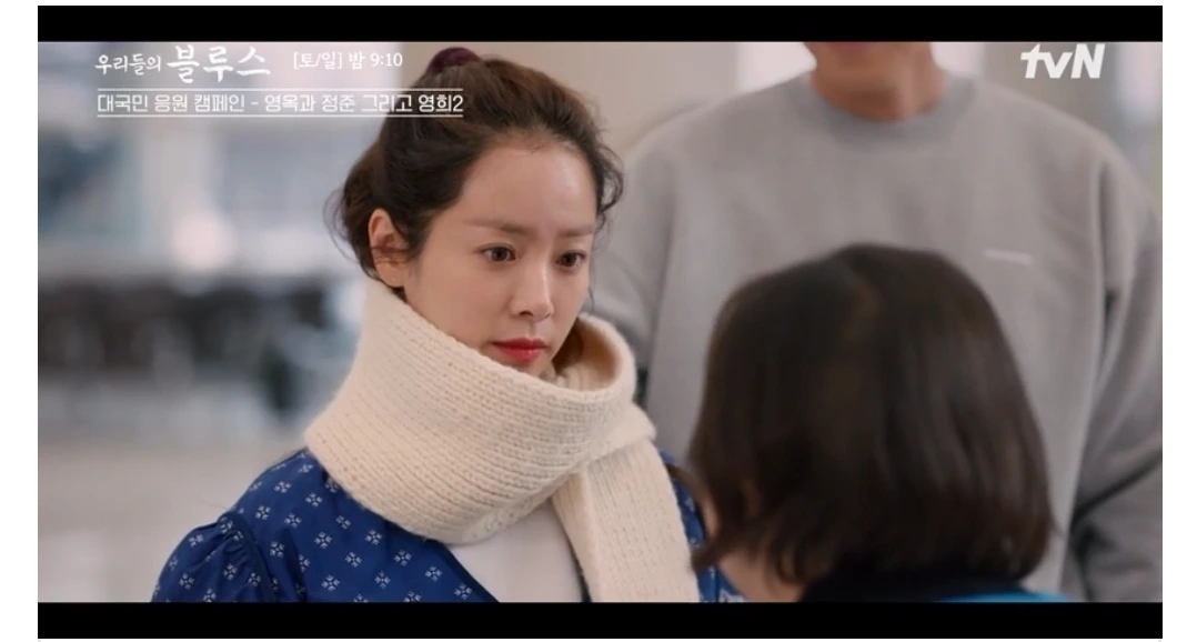 동생 영옥의 목도리까지 짜서 공항서 영옥 목에 걸어주는데 동생 걱정해주는