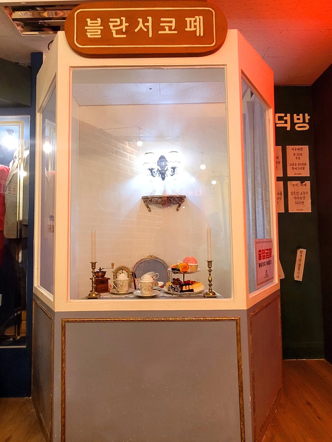 불란서 코페 전시는 예쁜 커피잔이 전시돼 있다. 울 집에도 있던 꽃무늬 커피 잔은 여섯 개고 설탕과 프림 커피를 담을 수 있는 통까지 있어 거피잔 셋트는 아홉게 였다