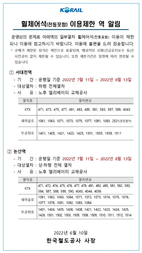 기 간: 운행일 기준 2022년 7월11일~8월 13일까지