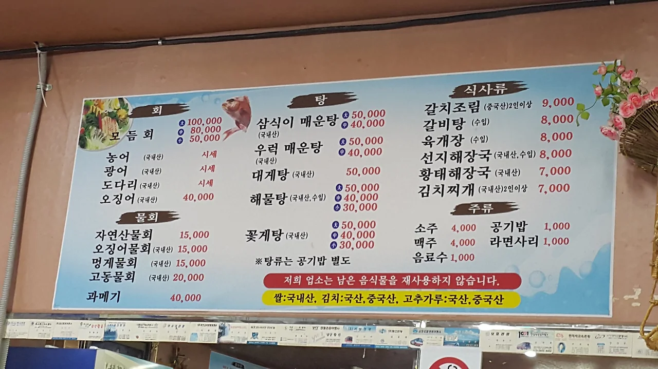 규모도 엄청 크지만 무엇보다 물 회가 군침 돌게 한다.