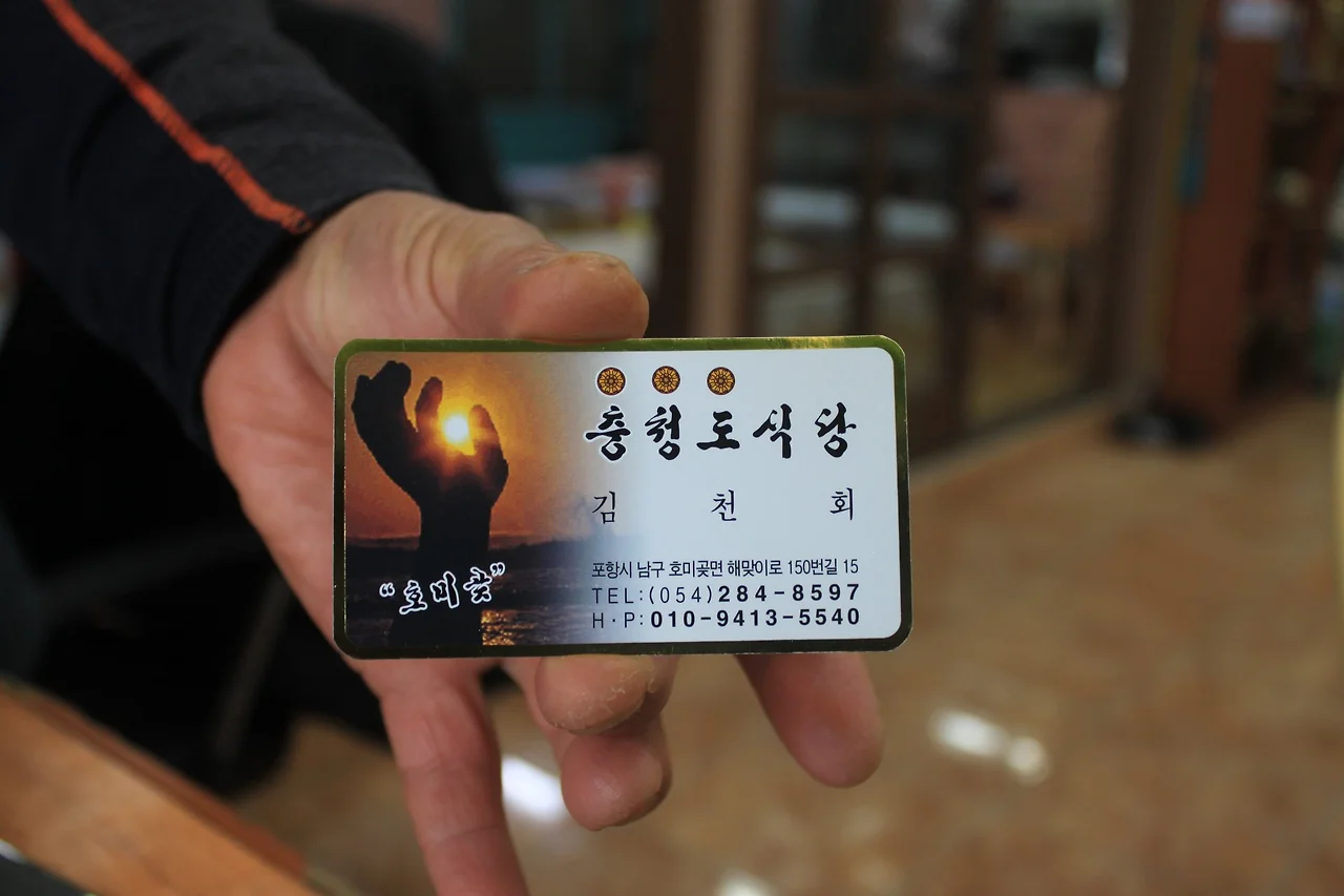 호미곶 “충청도 식당”은 누구나 접근해 맛있는 호항에 물 회를 먹을 수 있다.
