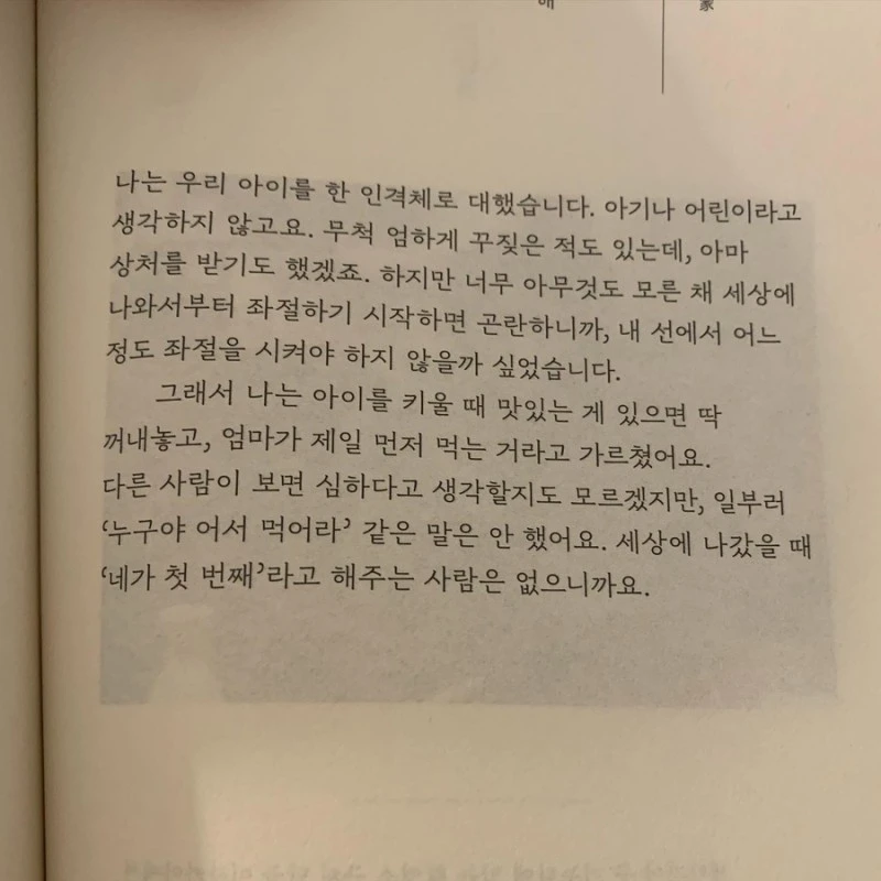 우리 집에 애가 둘이 있나 싶은데.. 남편은 다원이가 식탁에 앉아서 밥을 먹기 시작할 때부터 맛있는 음식을 첫 번째로 내어주지 않았다. 제일 첫 번째로 나에게 음식을 주고 그다음은 남편 그리고 마지막이 다원이다. 남들이 보면 너무하다 싶을 수 있는데 우리 가정의 형태가 이렇다. 부모가 우선순위로 돌아간다 아이는 언제나 맨 마지막이다.