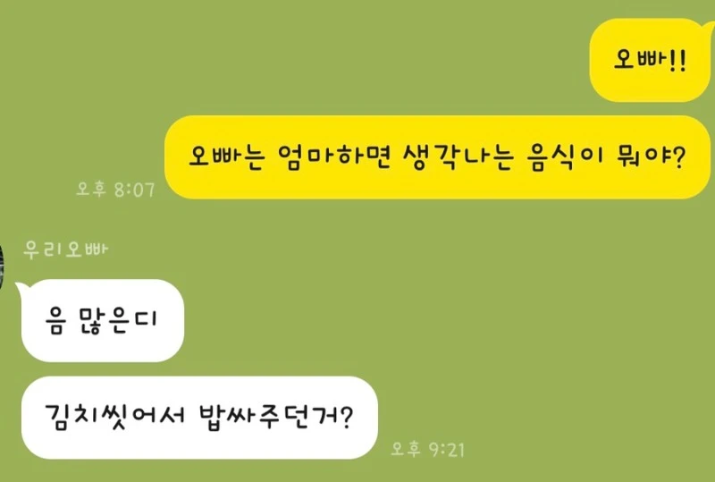 “오빠는 엄마 하면 생각나는 음식이 뭐야?”