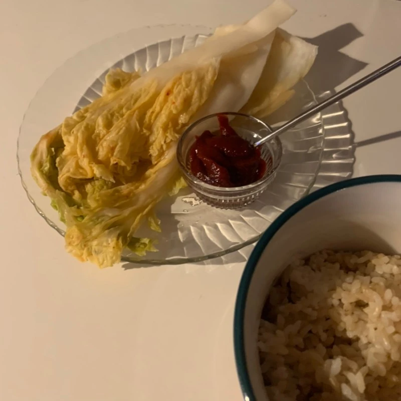 “음 많은디 김치 씻어서 밥 싸주던거?”