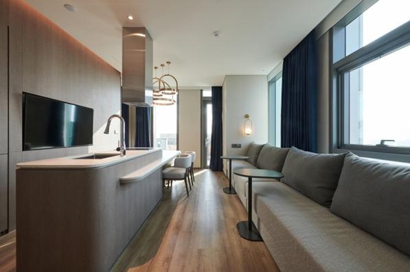 통창으로 풍부한 자연 채광이 유입되도록 창문의 크기와 방향을 설계했으며, 자연의 수려한 곡선을 표현한 아치 디테일을 호텔 로비, 식음 업장, 이그제큐티브 플로어 라운지 및 객실 등 호텔 전체를 관통하는 핵심 디자인 요소로 적용해 시각적인 아름다움과 부드러운 유연함, 통일성을 부여했다. 특히, 호텔 입구에 4.4미터, 가로 10.4미터 크기의 초대형 미디어월을 설치하여 현대적인 감성과 모던함을 더하면서, 자연을 주제로 제작한 디지털 영상을 통해 어반 네이처 콘셉트를 전달한다.
