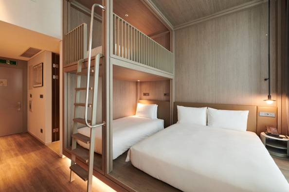 가족 및 그룹 투숙객들을 위해 패밀리 트윈과 쿼드러플 객실을 마련했으며, 특히 쿼드러플 객실은 2층 침대를 포함 총 3개의 침대가 구비되어 다양한 유형의 투숙객들을 수용할 수 있다. 또한, 한강 뷰와 시티 뷰, 남산 뷰까지 다양한 객실 전망을 보유해 고객들이 서울 도심의 매력을 다각도로 즐길 수 있도록 설계됐다.