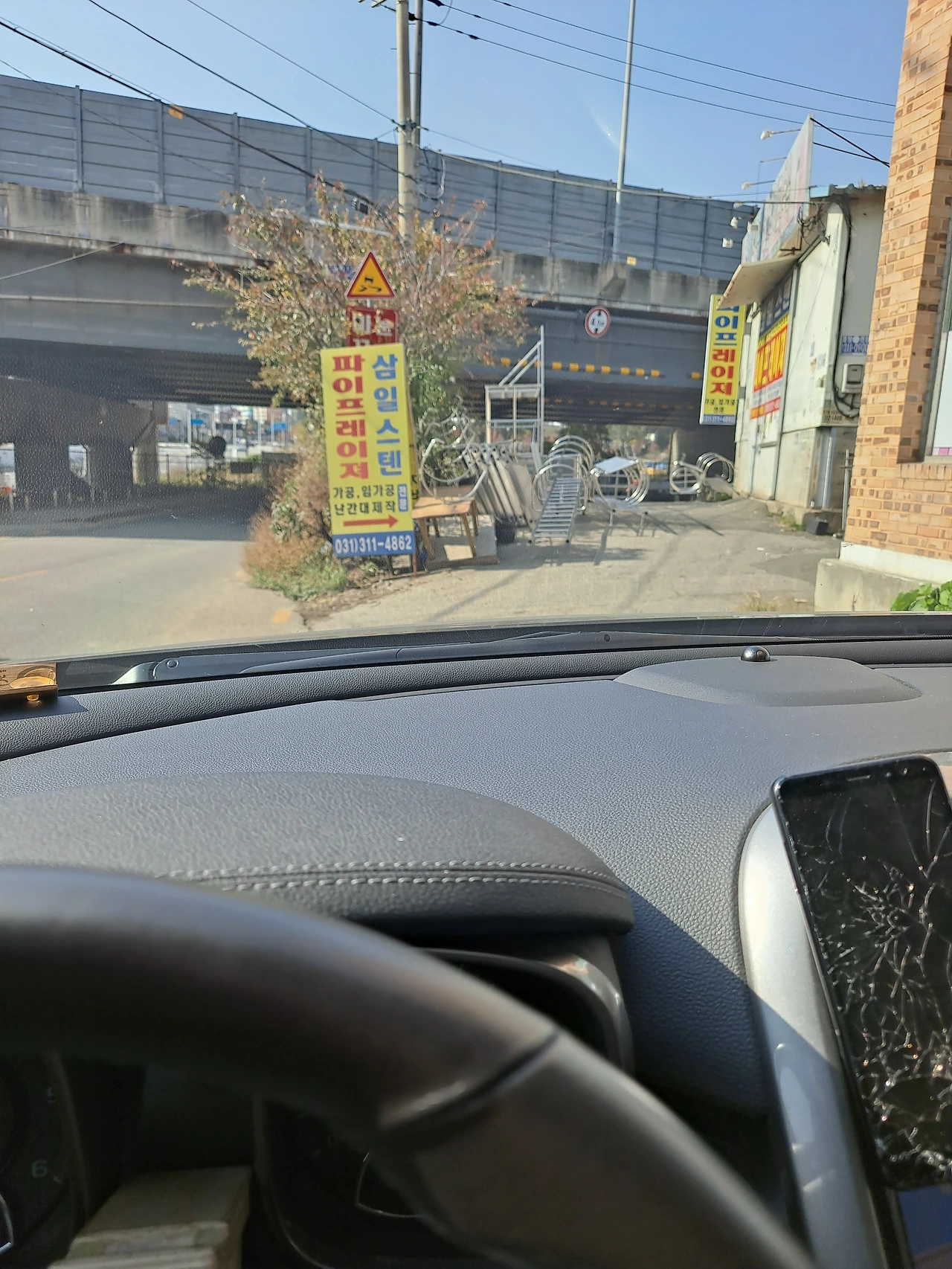 쉬는 식당 앞 주차장에 멈춰 있다.