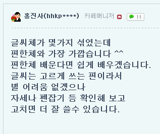 열심히 한 다음 나중에 잡힌 필체를 공개하도록 하겠습니다.