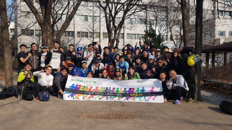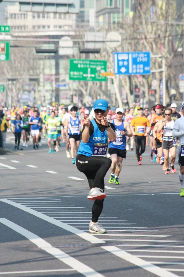 18km 지점 우리 자원봉사 팀원이 찍어주는 사진에 익살스러운 포즈를 취합니다. ㅋ