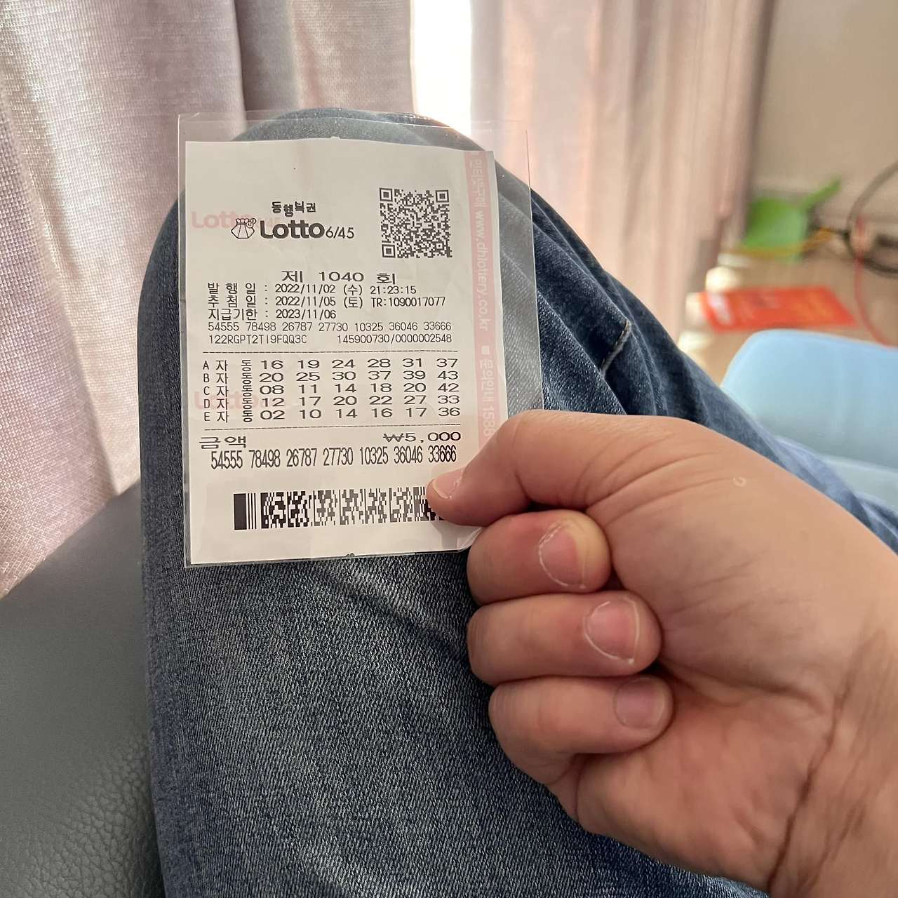 지난 수요일, 친구가 사준 로또를 엄마 집에서 맞춰 본다. 아빠와 엄마를 개구지게 부르며,