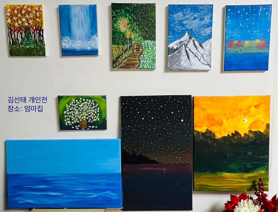 가슴 벅찬 이 가을에 개인전을 개최하고 있다. 세상에서 나를 가장 좋아하는 찐 팬이 사는 집, 그 집 거실에 마감일 없는 개인전을 열었다. 엄마는 눈을 꿈뻑꿈뻑하며 내가 그린 그림을 손으로 만지작 거린다. 호기심 그득한 얼굴 표정으로 연신 신기해하며, 이것이 진짜 네가 그린 것이 맞냐 묻는다. 엄마에게 큰 선물을 한 것 같아 나도 기분 좋게 웃는다. 엄마가 두세 번 물을 때 두세 번 똑같은 대답을 한다.