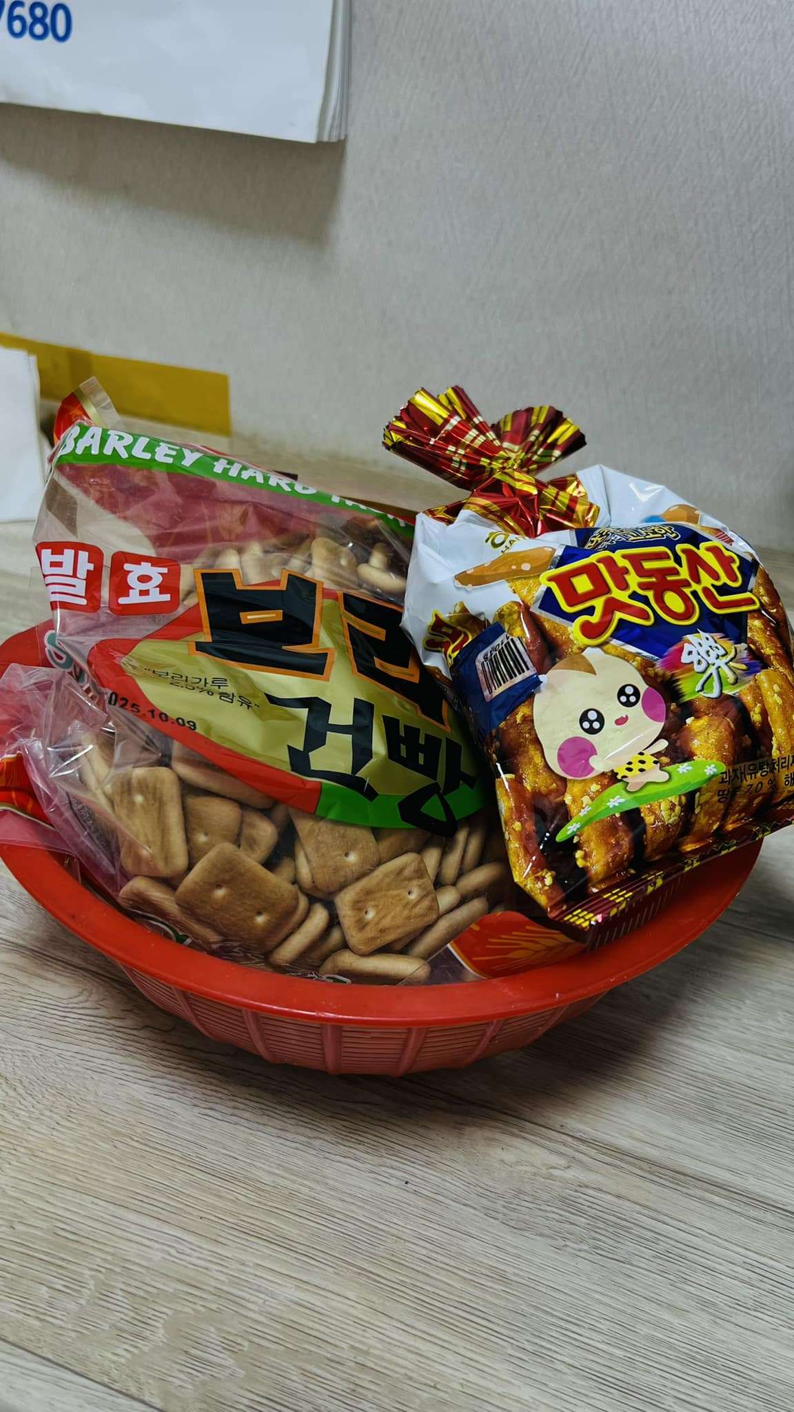 엄마는 아들이 온다는 이야기에 마트를 갔다 온 모양이다. 빨간 소쿠리에 들어있는 맛동산과 보리건빵을 들었다 놨다 하면서 하는 말이,