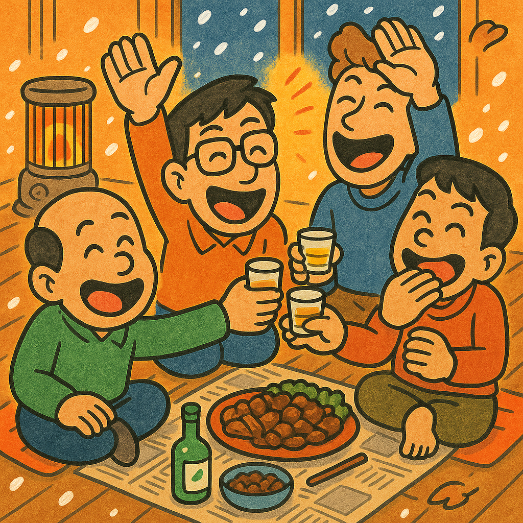 밤새 하얀 첫눈이 요란스럽게 내리던 밤이었다. 친구 집에는 여느 집 누구나 가지고 있는 식탁과 식탁보가 없었다. 우린 능숙한 솜씨로 방바닥에 신문지를 깔았다. 그 위에 군산 영화동 맛집에서 공수해 온 닭똥집과 갈비를 올렸다. 친구들과 나는 지난 45년간의 삶에서 얻은 교훈을 흥겹게 나눴다. 무리에서 가장 잘생긴 친구, 억팔이가 또박또박 말했고 우린 격하게 동감했다.