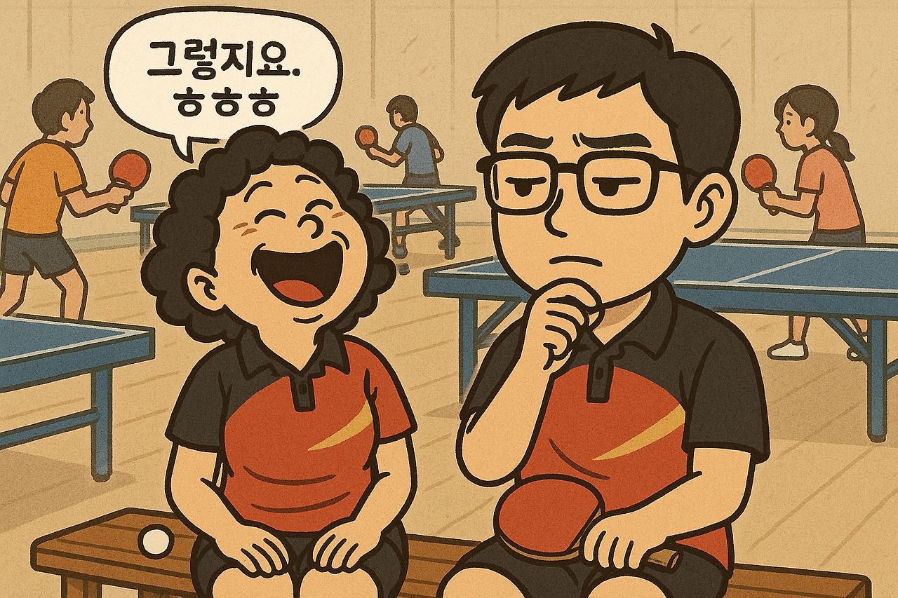 아줌마는 나의 멘트에 목젖을 보이며 시원하게 껄껄 웃었다. 언제 웃었냐는 듯 정색한 아줌마는 심오한 진리를 설파하기 시작하셨다. 참고로 탁구 하수인 아줌마는 나를 선생님이라 부른다. 내가 고수라는 얘기다. ㅋㅋ