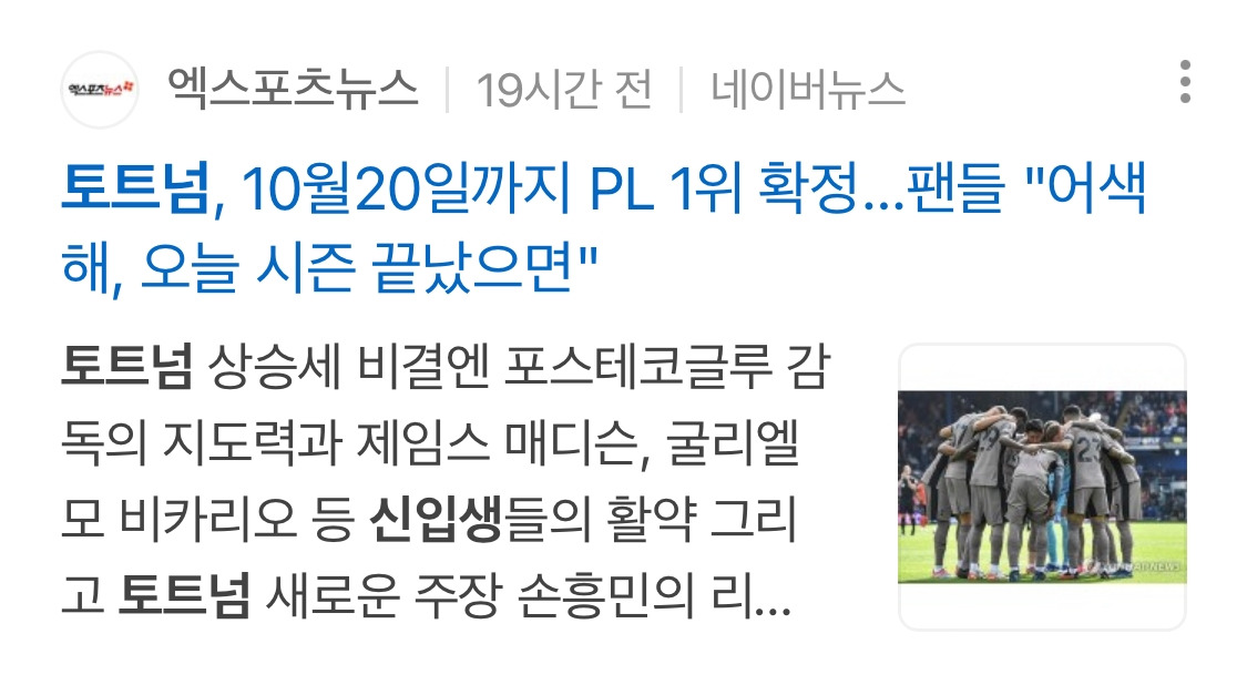 세상에 토트넘이 EPL에서 1위를 선점 중이다. 작년 손흥민의 인터뷰를 볼 때마다 최종 목표는 무엇이냐는 인터뷰어의 질문에 ‘top 4’라고 대답하던 손흥민의 모습이 떠오른다. (탑 4에 들어야 챔피언스리그 진출권이 주어진다) 새벽에 봤던 뉴캐슬전과의 6-1은 아직도 기억이 생생하다.(내가 6-1 보자고 이 새벽에.. 라며 보기는 끝까지 다 봤다) 그런데 올해는 토트넘이 1위를 유지하고 있다. 케인이 뮌헨으로 떠나가고 뒤숭숭했던 마음은 승리와 무패 보여주는 토트넘의 모습에 점점 안심이 되었다.