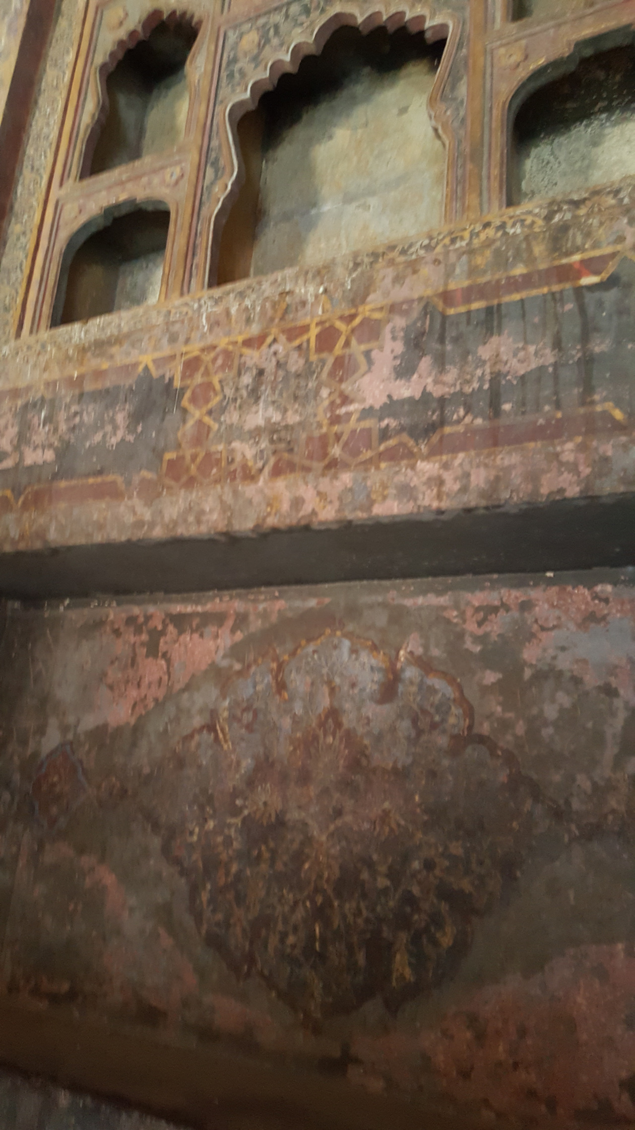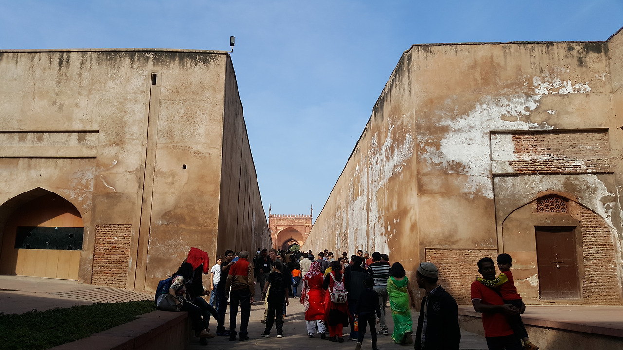 가이드는 한 건축물의 천정과 벽면의 누르스름한 면을 가리키면서 이곳이 바로 영국이 들어와 금부분만 다 벗겨 나갔다며 나쁜 영국*이라고 얘기하여 다같이 웃게 만들었다. 그리고 성안의 설치되어 있는 왕자와 공주를 위한 놀이공간도 보고 성 안의 아름다운 모스크도 관람하였다. 또한 황제가 귀빈접견을 하던 디완이카스(private)와 백성들의 강연장으로 활용한 디완이암(public)을 관람했다.