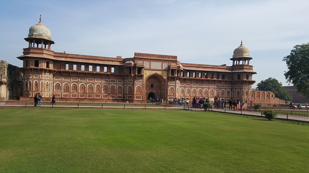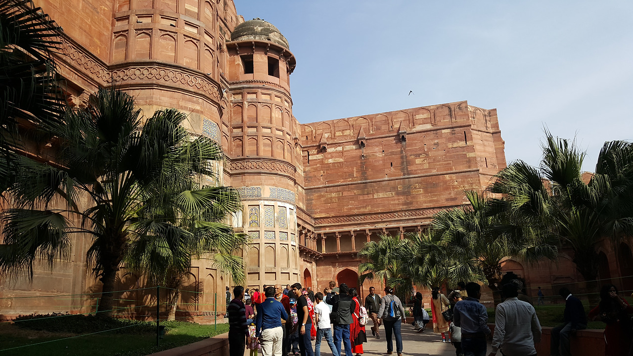 이 성은 악바르대제가 만들었지만 샤자한이 궁성으로 개조를 하고 아우랑제브는 외부성채를 건설해서 이중으로 된 성벽 사이에 물길을 설치했다고 한다. 따라서, 관람 중에 붉은색은 악바르 대제, 그림이 강조되어 있으면 자항기르, 대리석으로 꾸며져 있으면 샤자한 시대때 축조된 것으로 보면 된다고 했다.