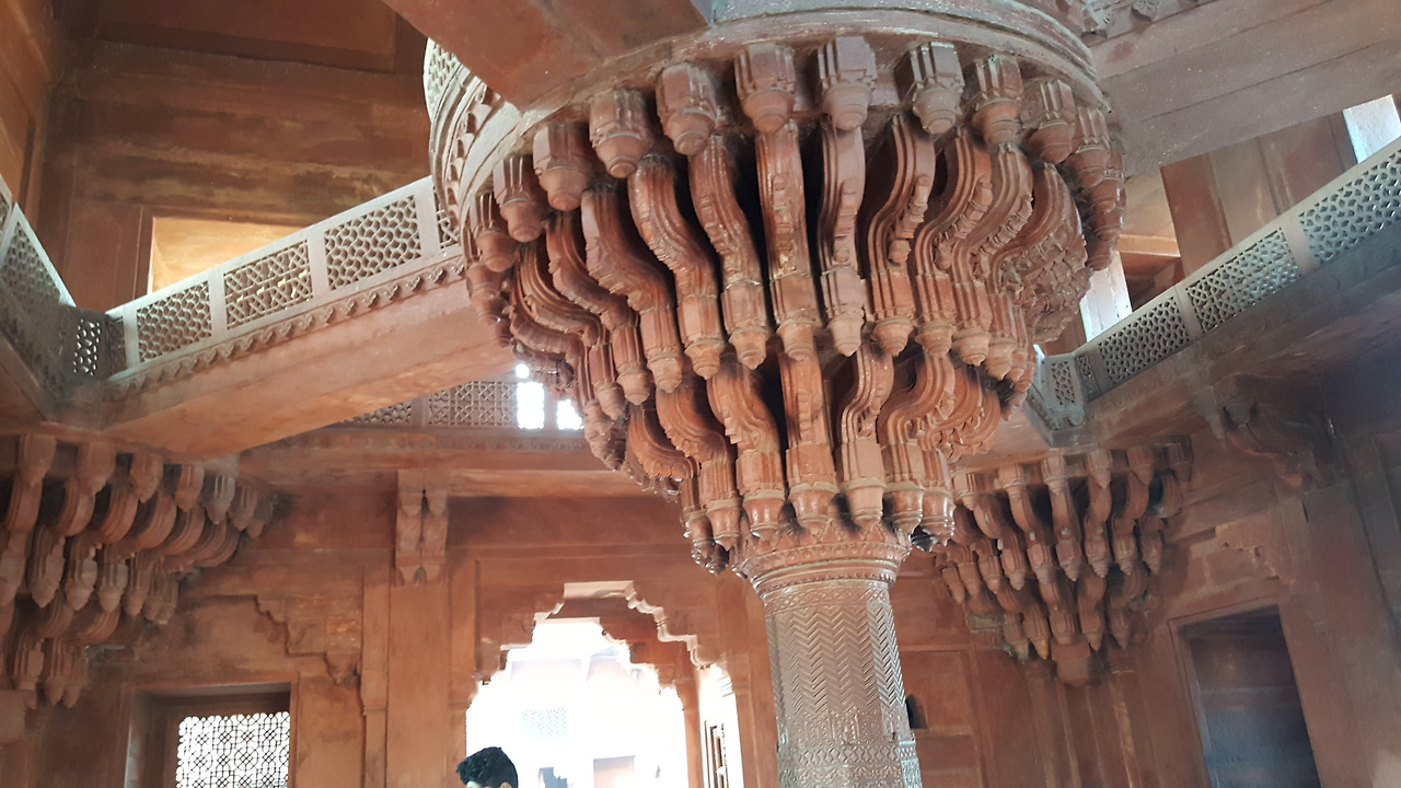 시크리에서 가장 인상이 남은 건물은 바람의 궁전이라는 판치마할이었다. 위로 올라갈수록 좁아지는 피라미드 형식의 5층 건물인데 건물 벽이 없이 기둥으로만 만들어진 건물었고 그 건축물을 이루고 있는 기둥들은 제각기 다르게 디자인 되어 있었다.