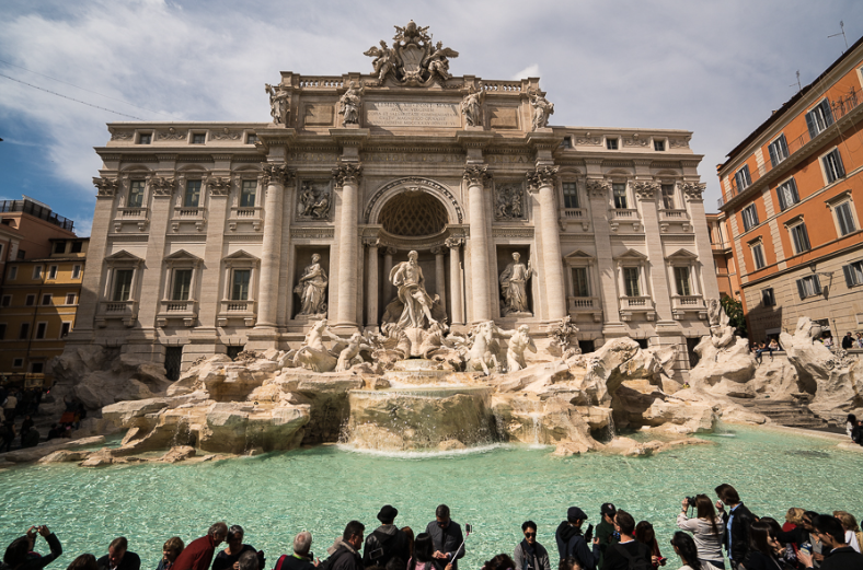 아이스크림을 먹고난 뒤 분수 주변으로 다가갔다. 워낙 사람들이 많아 소매치기를 경계하며 분수앞에서 동전을 던지며 사진을 남겼다. 중앙에 있는 동상이 바다의 신 넵튠이고 주위에 있는 조각들이 반인반어의 해신 트리튼이란다. 이곳에서 뒤로 동전을 던지면 한 번 성공하면 다시 오고, 두 번 성공하면 운명의 사랑을 만나고 세 번 성공하면 그 사람과 결혼한다는 속설이 있다는데, 옆에 아내가 있기 땜(?)에 한 번만 던져 보았다. 이 곳에 던져지는 동전은 연간 19억원에 이르는데 과거에는 모아서 자선단체에 기부한다고 하다가 경제가 어려워진 지금은 그렇게 하지 않는단다.