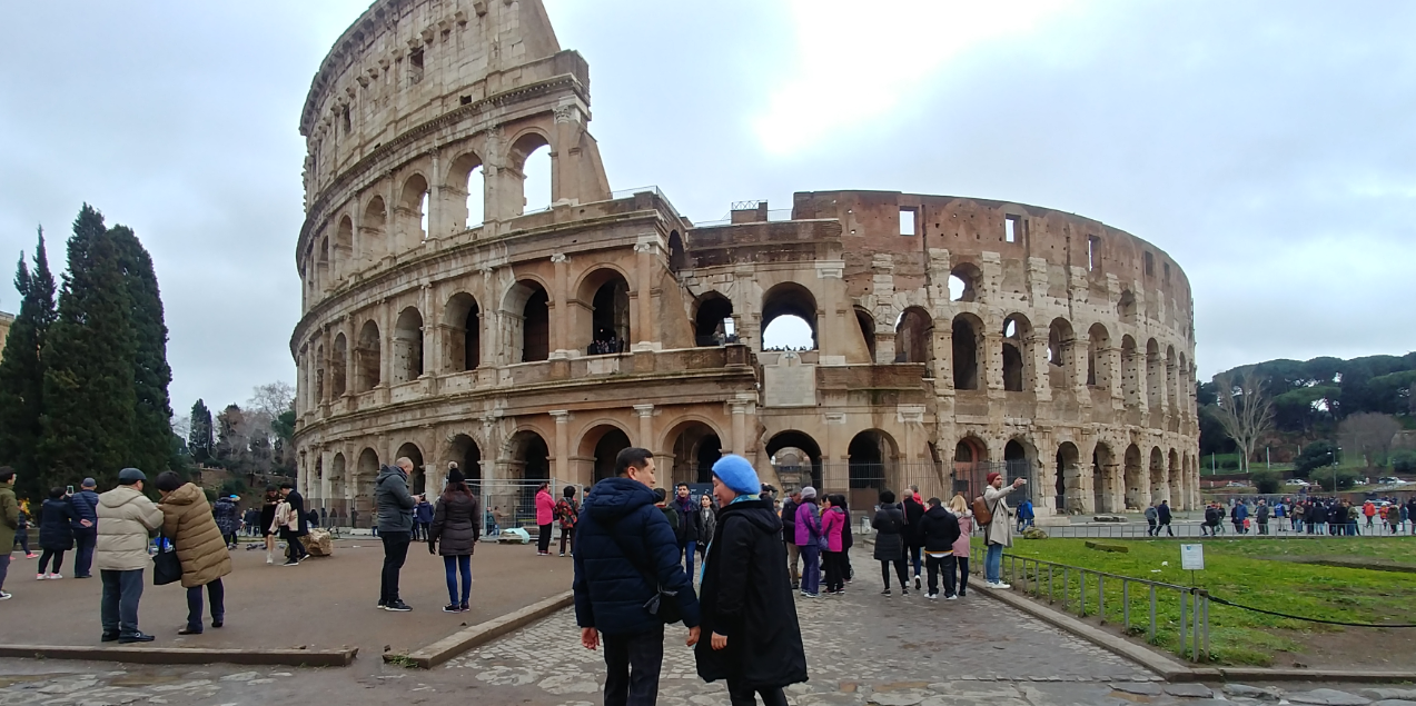 콜로세움 전체를 조망할 수 있는 곳에서 가이드의 주문에 따라 어색한 사진을 남겼다.