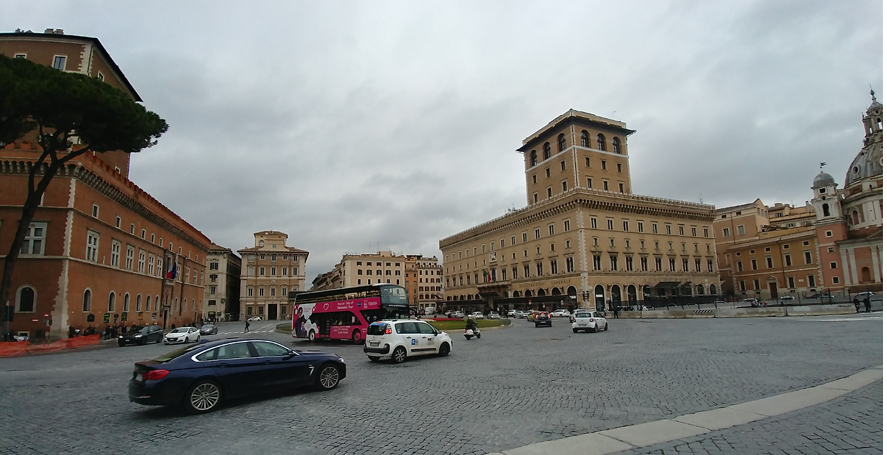 그 동상 앞에 펼쳐져 있는 광장이 베네치아 광장이었다. 베테니아 광장 왼편이 베네치아 궁전인데 이 곳에서 뭇솔리니가 20년간 머물렀던 장소이고 2차대전 참전을 선포한 장소라 한다. 매년 6월 2일이면 이곳에서 이탈리아 통일기념 행사가 개최된다고 한다.