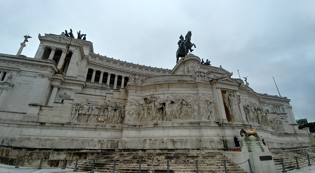 통일기념관은 476년 분열되어 도시국가 형태로 있던 1870년 이탈리아를 하나의 국가로 통일시킨 비토리오 에마누엘레 2세를 기념하기 위한 곳이라 했는데 그 규모가 어마 어마했다. 에마누엘레 2세 동상 아래에는 미국의 자유의 여신상 모태가 되었다는 여신의 모습이 새겨져 있었고 사방에 웅장하고 멋진 조각물들이 자리잡고 있었다. .