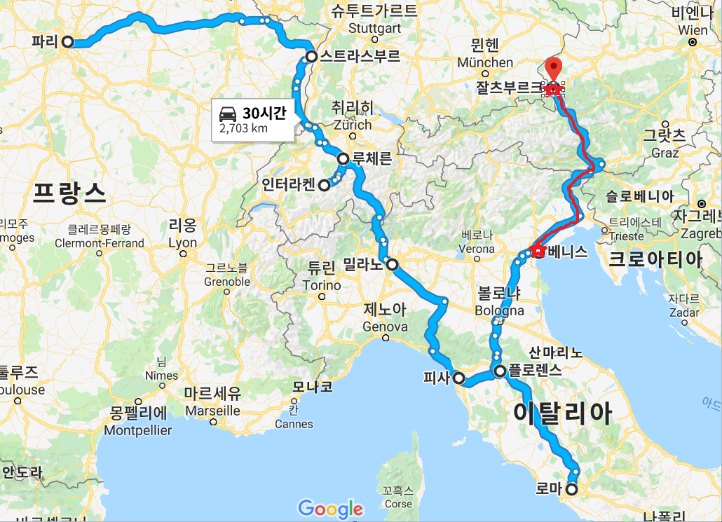 400키로가 넘는 길을 따라 오스트리아로 이동한다. 중간에 가이드가 커피맛이 최고라는 휴게실에서 이탈리아의 마지막 일정을 보내고 다시 2시간 이상 달려 오스트리아로 향했다.이제는 익숙해진 휴게실에 도착해서는 커피 한 잔을 하고, 일행들과 나눌 요량으로 세일하는 와인 3병을 10유로에(한 병에 4천원) 확보(?)했다. 중간 휴게실 오는 동안에 이미 눈에 덮혀버린 멋진 설산을 휴대폰에 담고 다시 여행을 시작했다.