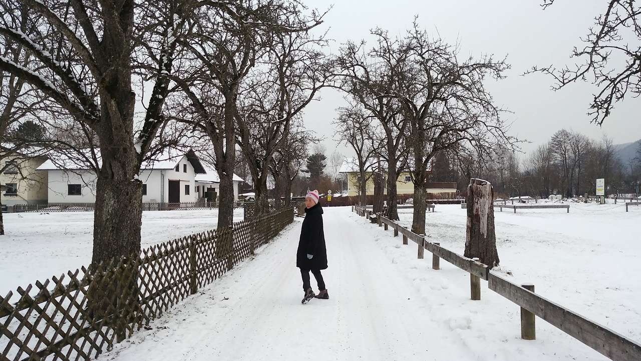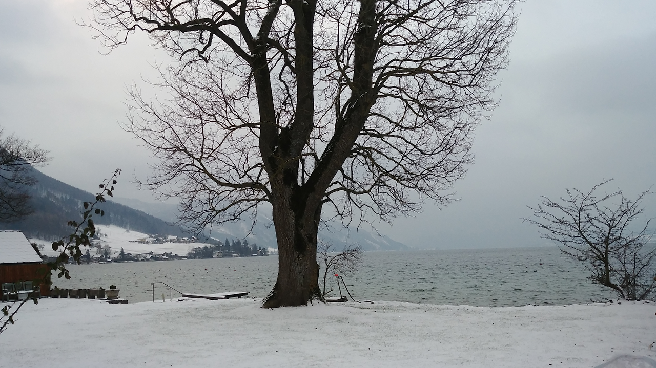 온통 하얀빛깔 속에서 드러난 나무와 예쁜 그림 엽서 속의 색깔들로 입혀진 집들이 예뻤다. 노란색과 푸른색 그리고 자색들이 어우려져 흰 눈과 최고의 콜라보를 연출하고 있었다. 아테제 호수는 해변으로 지칭되었다. 인터넷에 접속해보니 여름에는 그야말로 비키니를 입고 썬텐을 하는 해변 같은 곳이었다. 두터이 쌓인 눈을 밟고 해변으로 접근하자 넓은 호수가 눈에 들어왔다. 아마도 여름이었다면 자연의 총 천연색으로 호수 주변을 장식했을테지만 지금은 하얀 눈속에서 예쁜 마을 모습을 간직한채 원경을 꾸미고 있었다. 자료를 찾아보니 이곳 출신 화가 구스타프클림트('키스'란 작품으로 잘 알려진 상징주의 화가)가 그린 '아테제 호숫가의 리츨베르크'가 있다. 그림 가격이 무려 424억이란다.