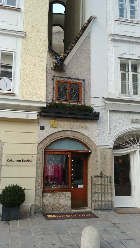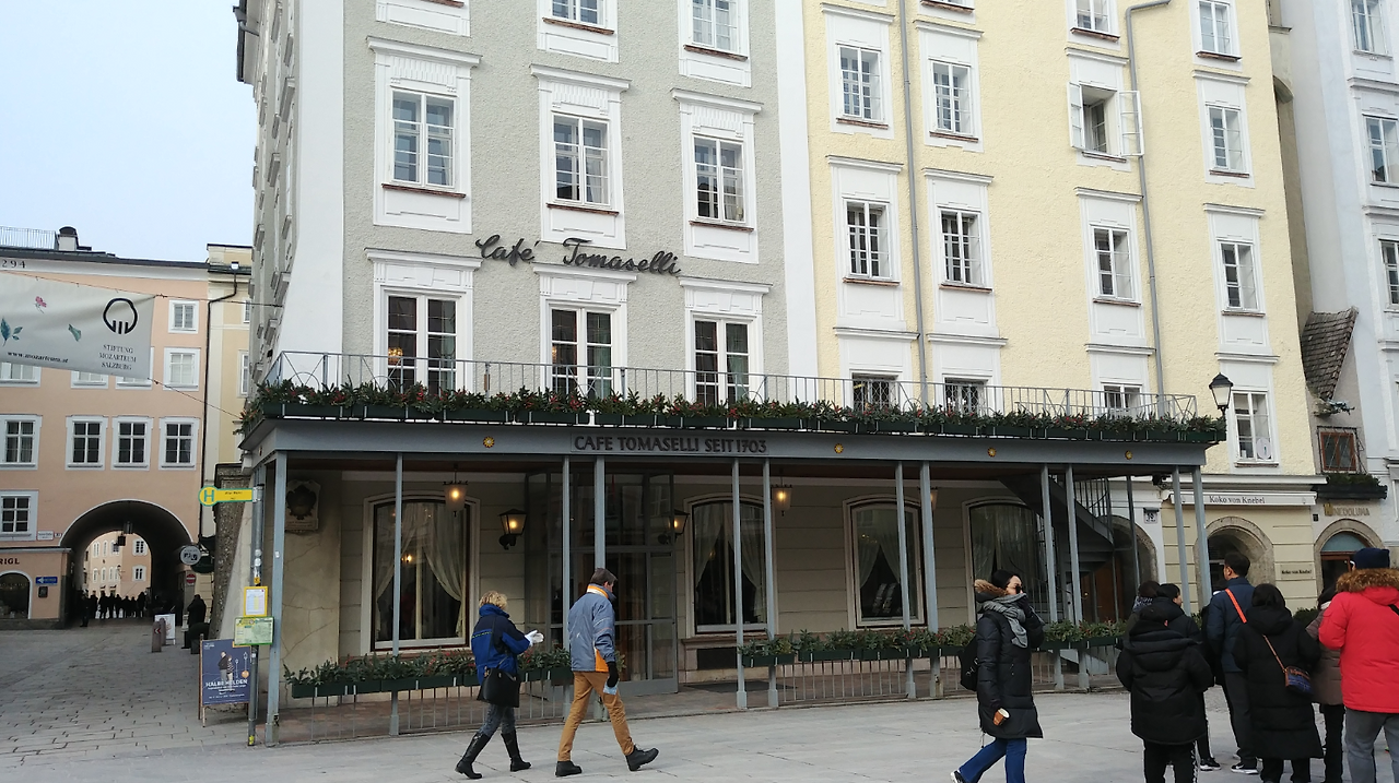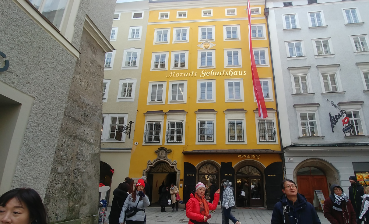 이동하면서 토마셀리라는 300년 된 커피숍을 지났다. 베네치아의 300년 된 커피숍에 이어 두 번쟤 만나는 커피숍이다. 지나치면서 사진을 남기고 폭 1.5미터 기네스에 등재된 세계에서 가장 작은 상점이란 곳이 나왔다. NEDLUHA라는 보석상이었는데 가난한 젊은이가 신부댁에서 집을 마련해 오면 결혼을 승낙해 주겠다는 말에 이웃 사람들이 십시일반 도와줘서 마련하게 된 집이라는 전설이 있다네요. 그땐 몰라도 지금은 시세가 상당할 듯.... 그리고, 이 곳 최고의 랜드마크 모짜르트의 생가를 만났다. 노란색 건물에 모짜르트라는 이니셜이 새겨져 있는 5-6층 되어 보이는 건물이었다. 지금은 박물관으로 사용하고 있는데 모짜르트가 16세 까지 있었던 건물이라 한다. 피아노치는 모습으로 기념사진을 남기고 다시 이동한 곳은 한국 사람들이 간판거리라고 하는 곳이었다.
