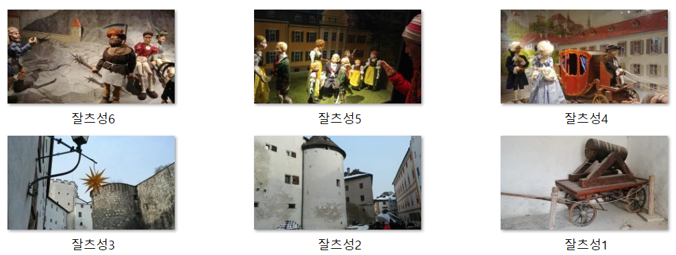 예쁜 시가지를 배경으로 몇 장 찍고 요새를 구경하러 갔다. 이곳에는 물이 없기 때문에 사람이 살지는 않는다고 했다. 비상시 이곳에서 사용할 물을 위해 우물 2곳과 빗물을 받아 식수로 사용한 시설들을 설명해 주었다. 그리고 성 내부쪽에 쇠고리를 가르키며 그것 또한 동물 위와 같은 주머니를 이용해서 물을 담아 매달아둔 용도로 사용했다고 했다. 성 곳곳에 세모 모양의 활을 쏘기 위한 모양과 총을 쏘기 위해 만들어진 벽면 모양들을 설명해 주었다. 성 중간에 사운드오브뮤직에 사용한 인형극용 소품들이 옛날 그대로 전시되어 있었다. 잠시 동안 1525년에 이곳 농민봉기가 일어나 성직자와 귀족층과의 싸움을 했던 영상을 보면서 이곳에서 있었던 역사적 사건을 반추해 볼 수 있었다. 성 관광 마지막에 다시 사진 찍기 좋은 곳으로 와서 몇몇 사진을 나기고 다시 쿠니쿨라를 이용해서 내려왔다.