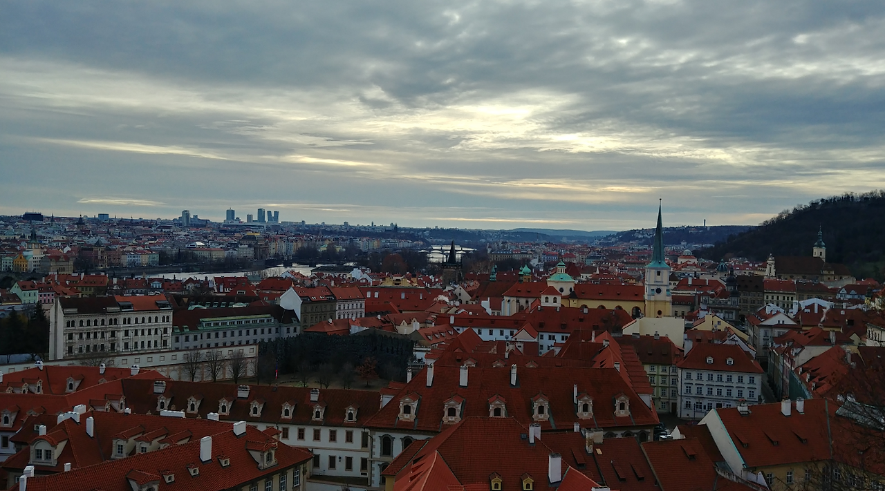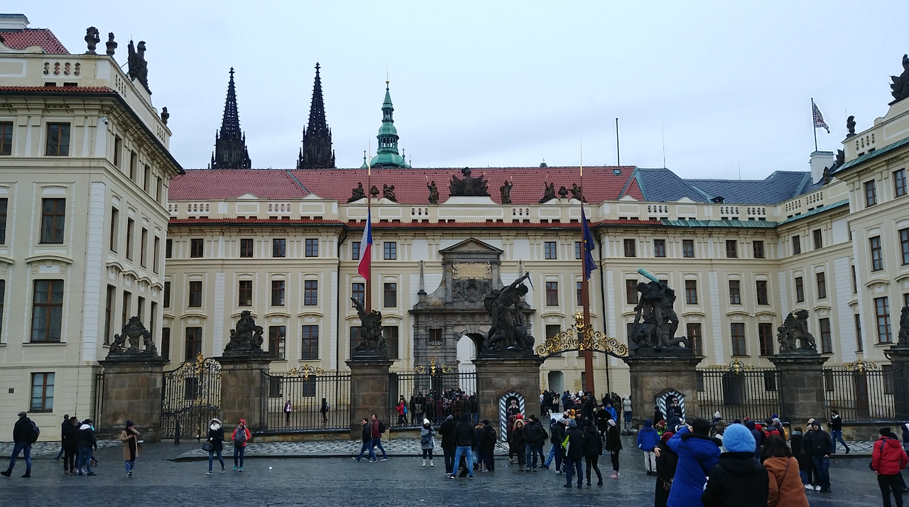 엔틱차량은 두 군데서 멈춰 설명하고 사진 찍을 시간을 주었는데, 한 곳은 프라하 성이고 다른 한 곳은 존레넌 담이었다. 프라하 성에 도착해서는 성 외부만 바라보며 불만 가득히 사진만 찍었는데 가이드의 재촉 가운데서도 프라하 성은 프라하 시내 전체를 조망하는 위치에 있었기에 빨간 지붕으로 빼곡히 들어선 프라하 시내를 사진에 담을 수 있어 좋았다. 프라하성은 다음 날 개인 관광으로 자세히 볼 수 있었다.