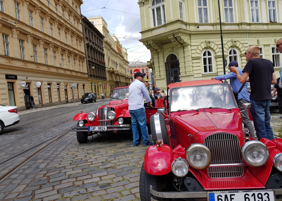 이어서 앤틱 자동차를 타고 시내를 일주하는 여행이었는데 차 모양이 장난감처럼 예뻤다. 과거에 실제 굴러가던 차량이라는데 바닥이 돌로 되어 있어 승차감은 좋지 않았다. 게다가 비가 흩날려서인지 비닐로 덮혀 있어 사진도 찍을 수 없고 바깥도 제대로 볼 수 없어 괜히 이 선택 관광을 했다고 후회하면서 프라하 시내를 돌아 다녔다. 게다가 가이드의 목소리가 우물거리듯 설명해서 잘 들리지도 않고 속도도 빨라 설명하는 내용을 짐작하면서 그냥 답답한 공간에서 시내를 한 바퀴 도는 정도였다. 마지막에 가이드가 사전에 얘기도 없었던 운전자 팁까지 줄 것을 권유해 더욱 기분이 나빠졌다.(비오는날은 특히, 완전 비추)