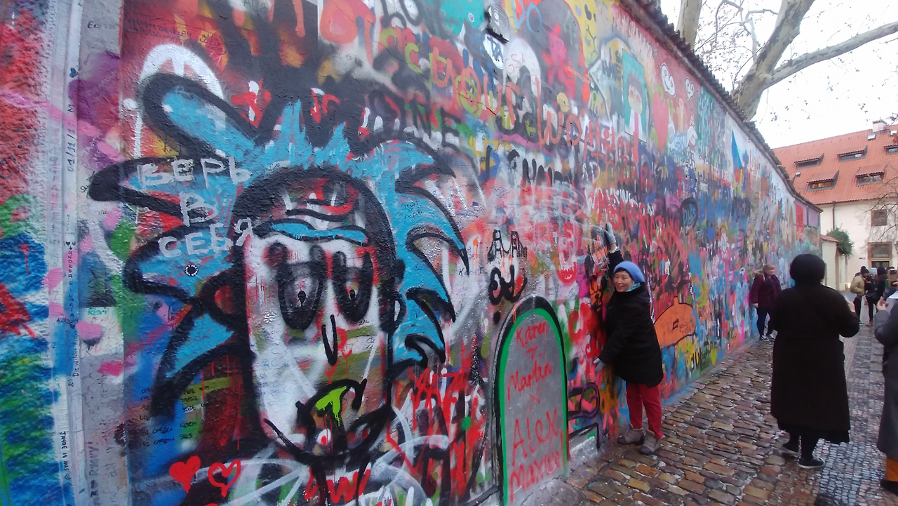 전 세계인의 낙서장이라는 존레넌벽으로 갔다. 1980년 비틀즈의 멤버였던 존레넌이 암살 당한 시점부터 자유와 평화를 열망하며 반 공산주의를 외치던 체코 사람들이 비틀즈의 가사를 생각하며 자신들이 하고 싶은 이야기를 그림과 글로 표현한 곳이다. 이매진 음악을 들으며 담벼락을 배경으로 사진을 남겼다.