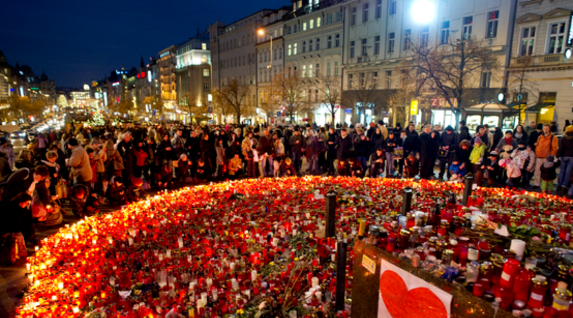 바츨라프 광장 1968년 프라하의 봄과 민주화의 혁명이 일어났던 곳이다. 광장은 우리 광화문 광장처럼 대로로 되어 있고 광화문에 해당되는 지점에 국립박물관(국립박물관에서는 외세의 침입때 다 가져가 버려 볼게 없단다.)이 있고 그 앞에 체코인들이 수호성인으로 여기는 성 바츨라프 기마성이 서있는 이곳은 체코인들의의 자유를 향한 열망이 깃들여 있는 장소로 프라하의 봄때 쏘련의 침공에 맞서 당시 학생이었던 얀 팔라크가 분신 자살한 장소였다고 한다