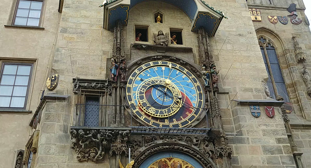 천문시계가 있는 곳으로 갔다. 거대한 원형 두개로 만들어진 시계 앞에 사람들이 많이 모여 있었다. 가이드는 시계를 바라보며 시계 주위의 조형물에 대한 설명을 빠른 말로 진행했으나 잘 알아 듣지 못했다. 이번 여행기간에도 천문 시계를 몇 군데서 봤는데 지금도 작동되는 기준으로는 가장 오래된 천문시계라 한다. 매 정시마다 해골모형과 예수님의 12제자 인형이 돌면서 시간을 알리고, 마지막에 닭울음으로 마무리 하는데 해골모형은 인생을 무상함을 의미한단다.