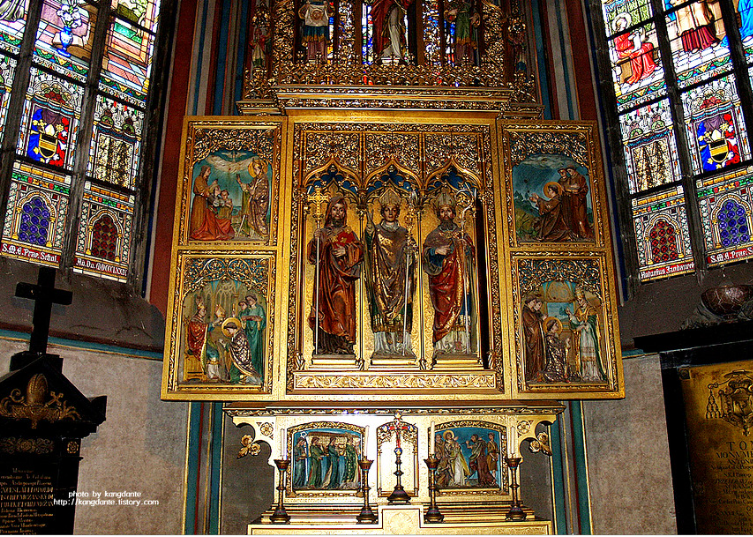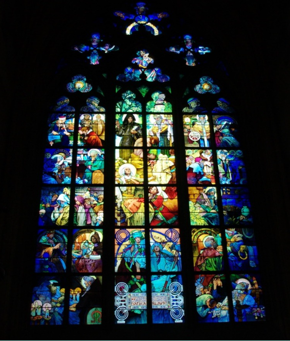 내부에 이런 화려한 스테인드글라스 예술품이 나타나는데 체코가 낳은 화가 알폰스 무하의 작품이란다. 그림이 아니라 색유리를 붙여서 만든 작품. 나는 전혀 모르는 분인데 예술을 일상으로 끌어내린 아르누보의 대가라는 화가.