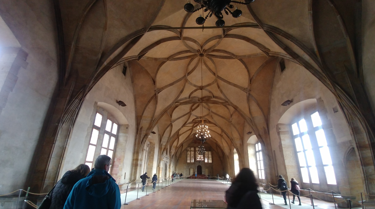 비트성당 옆에 구왕궁이 있었는데, 이곳은 9세기경 지을 때는 목조건물이었으나 12세기에 지금 형태로 다시 지었다 한다. 다른 왕궁과는 달리 이곳은 썰렁했다. 그렇지만 이 왕국이 지어질때만 해도 유럽에서는 가장 큰 규모였단다. 특히 기둥없는 공간으로는 최대를 자랑한다고. 왕의 대관식과 연회용으로 활용되었다 한다.
