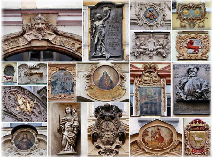 프라하성을 올라가는 동안 전형적인 유럽식 건물 문에는 집집마다 다른 그림들이 그려져 있어 저게 뭘까 하면 사진을 남겼는데 이곳 유명한 네루도바 거리란다. 그 그림들은 문패를 대신하는 문양으로 보는 재미가 솔솔했다. 바이올린집, 태양집, 금열쇠집, 독수리조각 집등을 볼 수 있다.