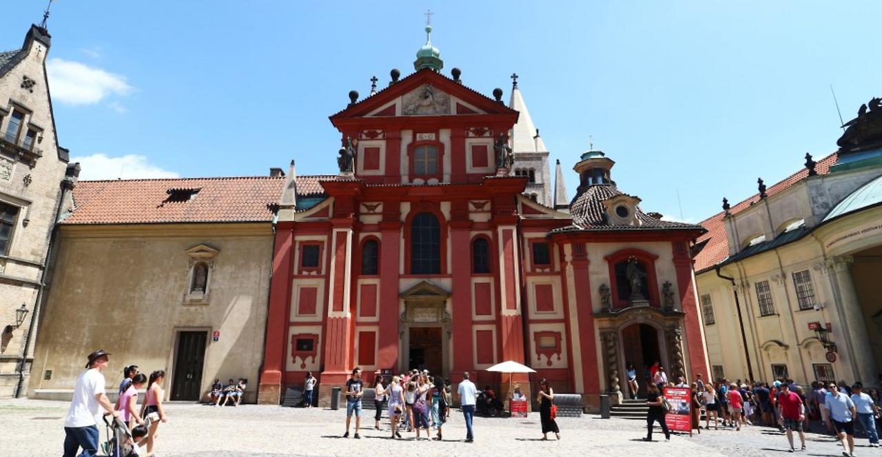 이르지(George)가 영어로 조지다. 성당 분위기가 이전 것과는 다르다. 이곳은 성 비트 성당보다 앞서 9세기 초에 건립되었다. 한다. 외형만 보고 이동하였다.