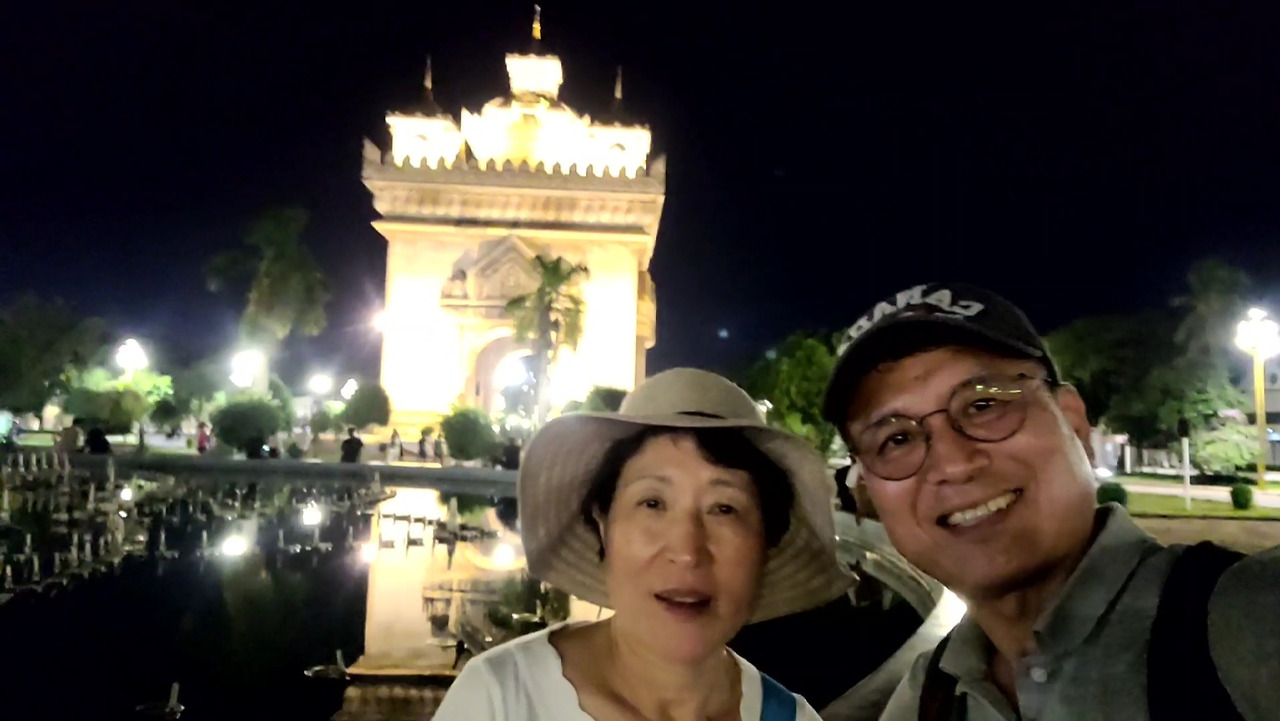 빠두사이, 라오스 독립기념문이며 파리의 개선문을 닮았다. 첫날 도착해서 이동할 때부터 여러 번 마주했던 것을 야경을 보기 위해 늦게 이곳을 찾았다. 과연 불빛 조명과 더불어 기념물 앞 물에 비친 모습까지 근사한 모습으로 다가왔다. 이 건축물은 프랑스로부터 독립을 기념하여 승리의 문이라는 이름으로 건립되었다. 세계 2차 대전과 프랑스 독립을 위해 싸운 군인들의 넋을 기리기 위해 건립된 건축물이다. 조명을 받은 근사한 건물이란 생각에 사진 찍는데 급급해서 규모는 미처 몰랐는데 나중에 확인해 보니 7층 건물에 높이 49미터 너비 24미터로 상당한 크기의 건축물이었다.