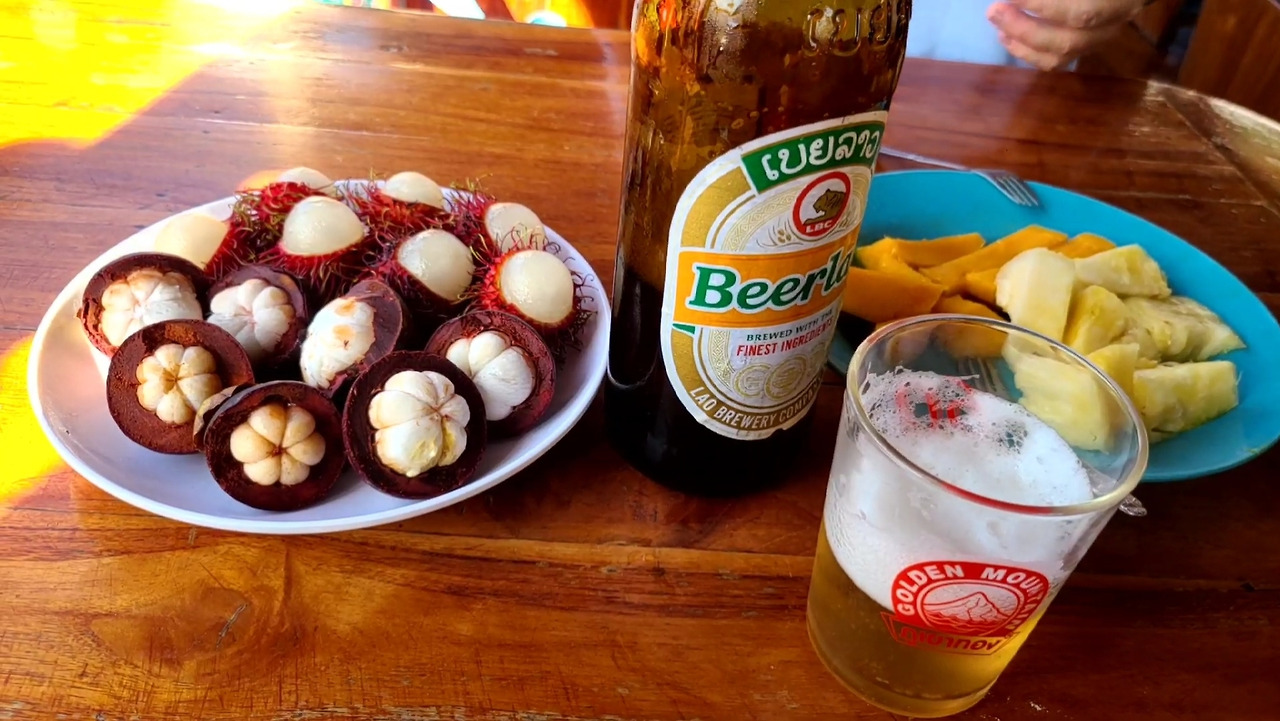 다음은 메콩강 유람이었다. 우리 한강과 같은 너비의 강이 라오스 국토 전역을 흐른다. 티벳에서 발원해 태국을 거쳐 라오스, 캄보디아, 베트남까지 무료 5개국을 거쳐 흐르는 인도차이나 반도의 진정한 젖줄이다. 강의 규모에 걸맞게 강에서 잡힌 물고기 종류와 크기는 바다의 큰 고기와 비슷할 정도이고 염전도 있어 강에서 소금도 생산된다고 한다. 메콩강 유람선에서 열대과일을 맘껏 즐기며 라오스의 가장 큰 기업이자 물까지 생산하는 라오비어를 마셨다. 처음 안 사실인데 라오 비어는 보리가 아니라 쌀로 생산된다는 가이드의 설명이다. 그래서인지 더 맛있게 느껴졌다. 라오비어는 세계 맥주 대회에서 여러 번 금상을 받기도 한 이곳 최고의 특산물이라고 한다. 쌀로 만들면 맥주라 부를 수 없는 것 아닌지 궁금하다. 하긴 밀맥주도 있으니 쌀맥주라 해도 될 듯... 강 바람을 헤치며 이곳 열대 과일을 안주로 목넘김 부드러운 쌀맥주, 라오비어와의 만남은 이곳 라오스에서 최고의 시간을 만들어 줬다.